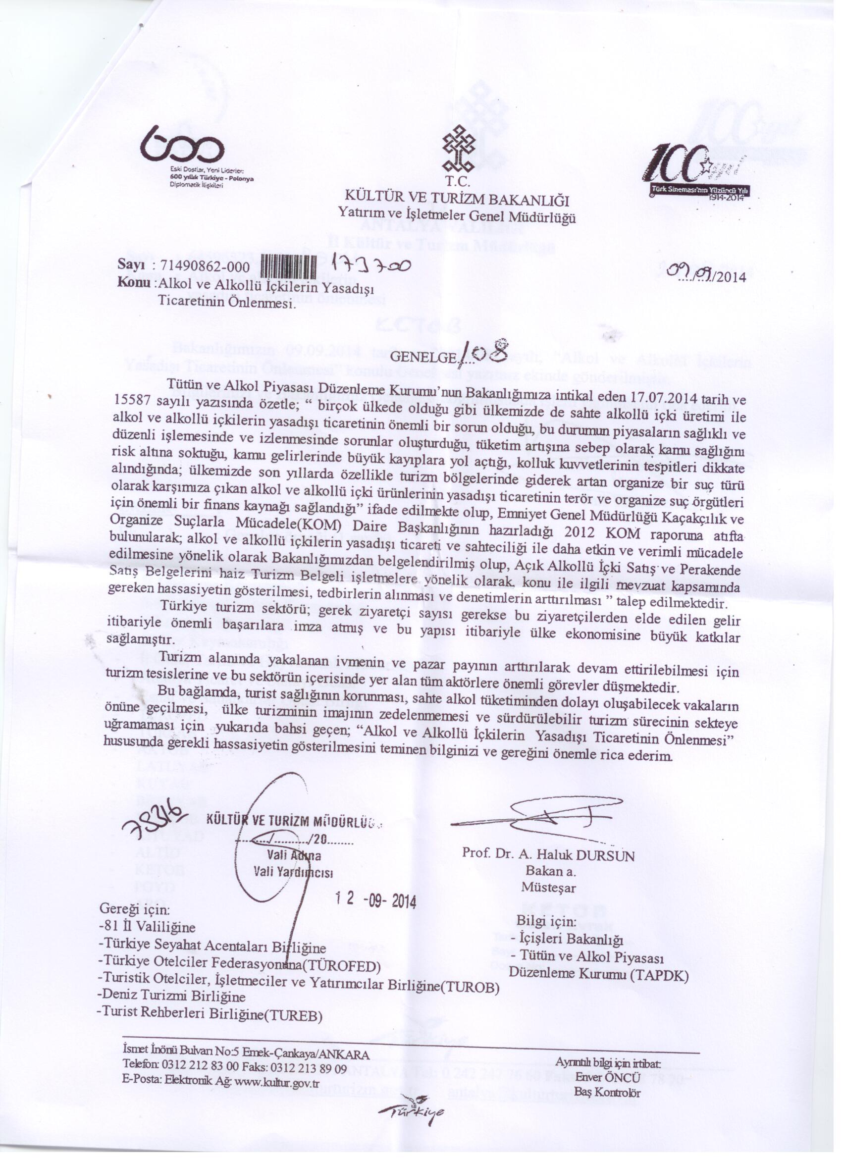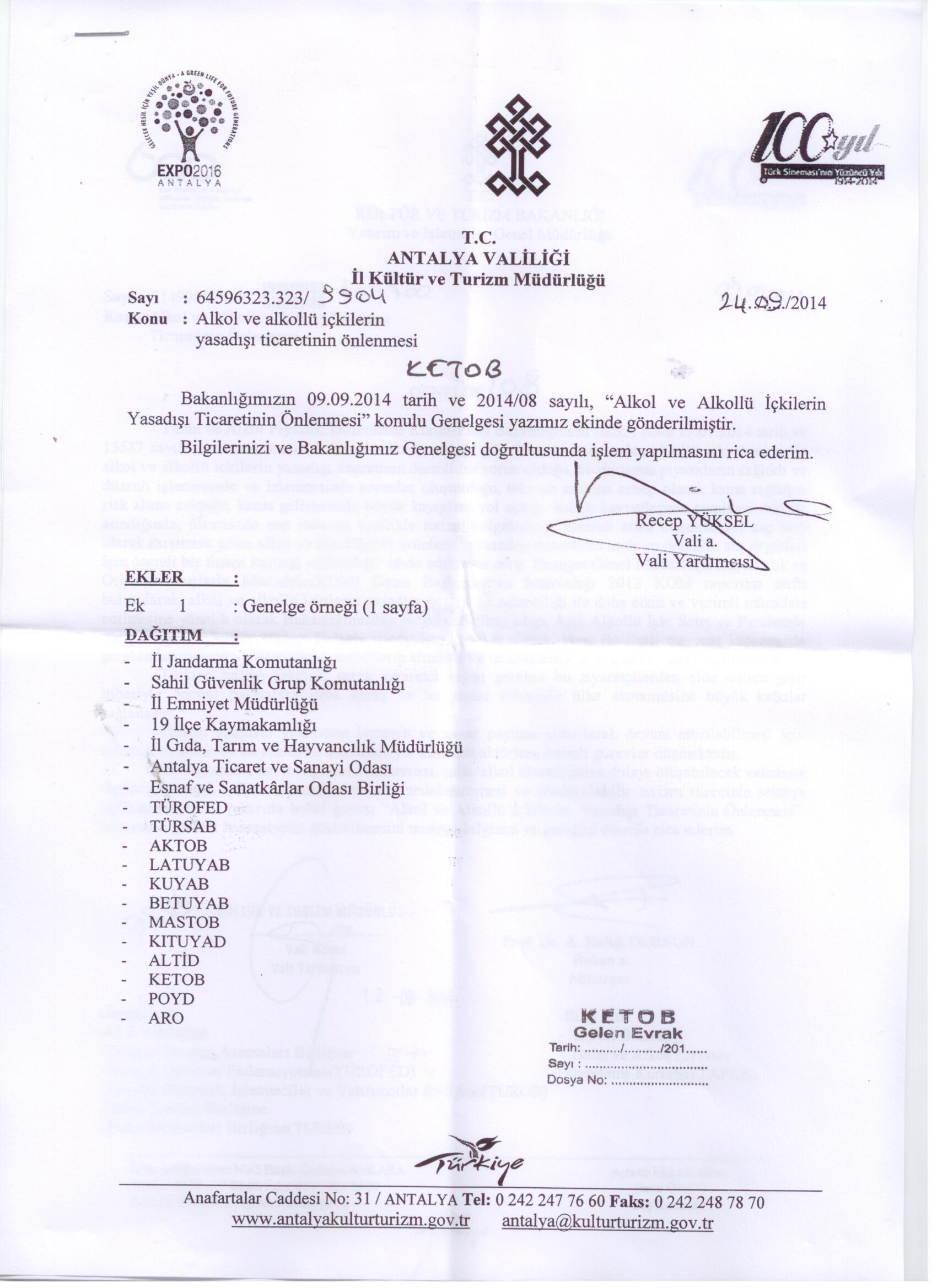 Antalya İl Kültür Turizm Müdürlüğü'nce tarafımıza iletilen yazı aşağıda bilgilerinize sunulmuştur.