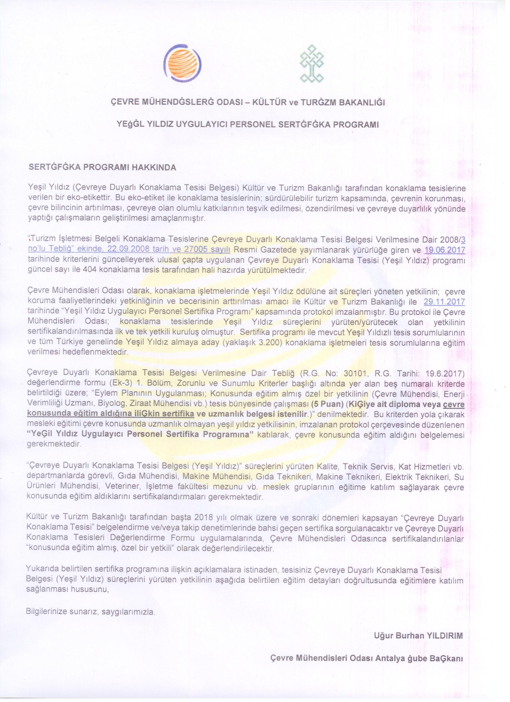Çevre Mühendisleri Odası(ÇMO) tarafından birliğimize üyelerimizle paylaşılmak üzere gönderilen “Yeşil Yıldız Sertifika Eğitim Programı” duyuru detayı aşağıda bilginize sunulmuştur.