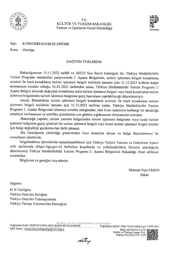 Sürdürülebilir Turizm Programı 1. Aşama Belgesi Genelge Duyurusu Hk.