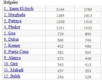 Açıklanan verilere göre 2014 yılı için Türkiye’ye yüzde 20'lere varan ön rezervasyon artışı yaşanıyor. Verilere göre kış sezonu olmasına rağmen Türkiye 3’üncü sırada yer aldı. Konuyu değerlendiren Tophotels.ru Türkiye temsilcisi Hakan Bulgurcu, “Türkiye’nin üçüncü sırada yer almasının anlamı, 2014 yılı için ön rezervasyonlarda hızlı bir yükseliş olduğudur. Bölge verilerine bakıldığında ön rezervasyonlarda Kemer önde, Belek bölgesi ise düşüşte. Kemer, Rusların hala gözde tatil bölgesidir ama sezon yaklaştıkça Belek bölgesi yine ikinci gözde bölge olacaktır” dedi.