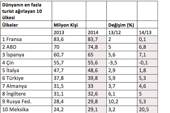 2015 yılında turizmdeki büyüme yüzde 3 ila 4 arasında tahmin ediliyor.