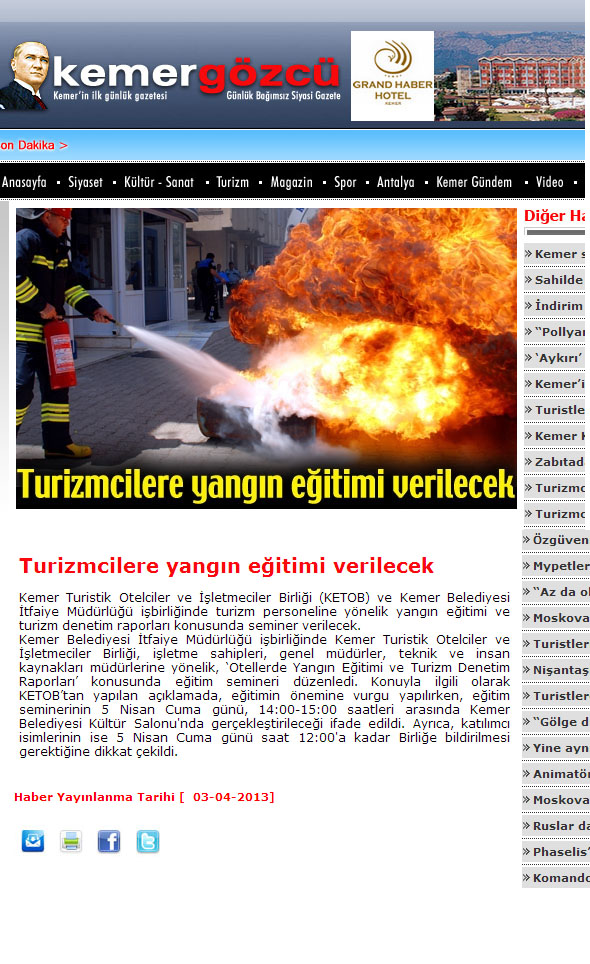 KETOB VE KEMER İLÇE BELEDİYESİ İTFAİYESİ YANGIN EĞİTİMLERİ