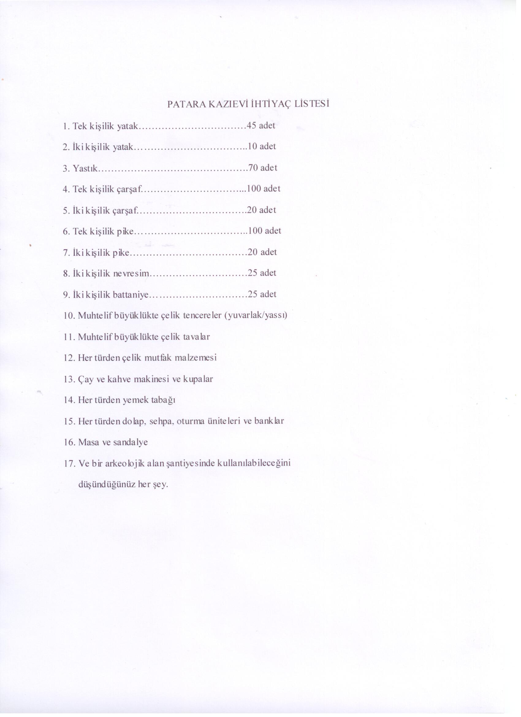 PATARA KAZILARINA DESTEK DUYURUSU HK.