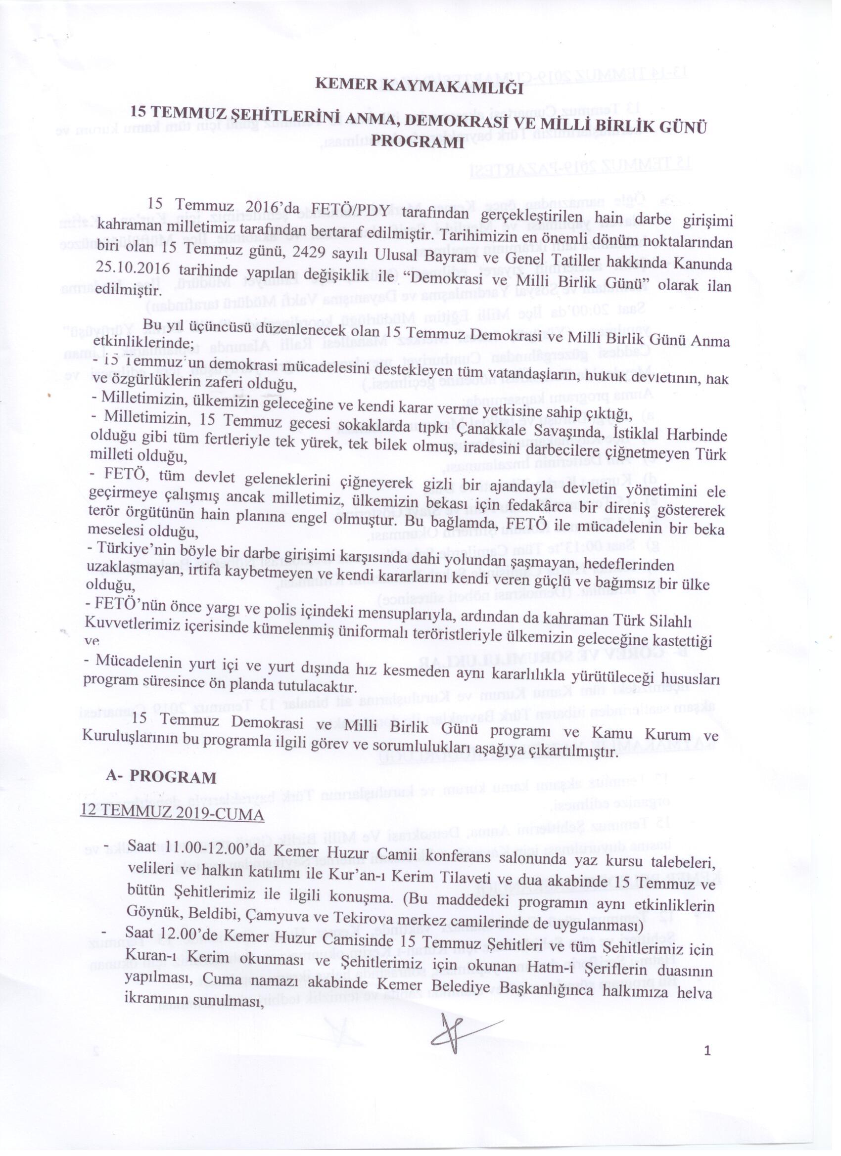 15 Temmuz Şehitlerini Anma, Demokrasi ve Milli Birlik Günü Programına Davet Duyurusu